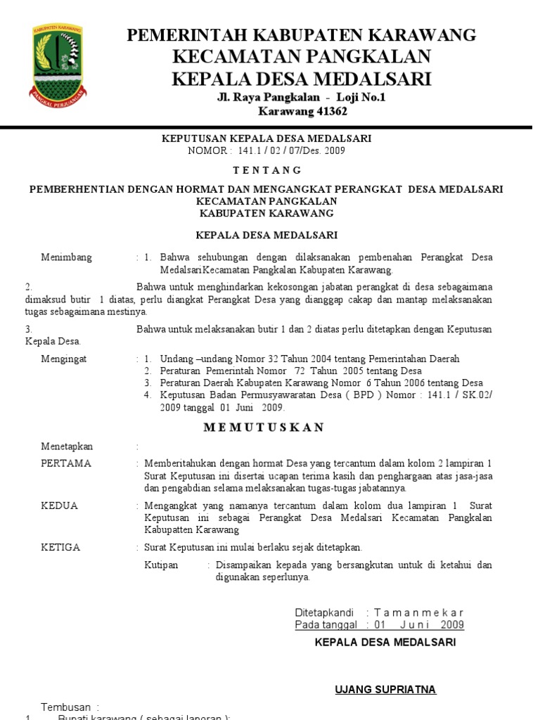 Contoh surat keputusan ini dirangkum dari berbagai sumber. Contoh surat keputusan kepala desa. Untuk mendapatkan file contoh surat keputusan pengangkatan karyawan kontrak yang tidak diproteksi dan bebas untuk diedit, silahkan anda kunjungi situs kami. Surat keputusan (sk) menjadi penanda akhir proses suatu masalah agar suatu masalah dapat teratasi dan bisa memberikan pilihan (alternatif). Hukuman disiplin bagi pns untuk pembebasan dari jabatan, hukuman disiplin pegawai negeri sipil berdasarkan pp no.